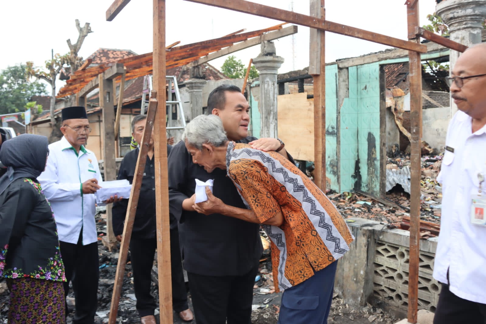 “Mohon bersabar nggih bapak ibu semuanya, turut prihatin atas musibah kebakaran yang menimpa rumah dan pasar darurat ini, ini ada sedikit bantuan dari kami semoga bisa sedikit meringankan beban bapak ibu,” ungkap Bupati Arief